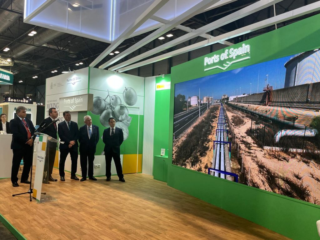 La presentación se ha realizado en el stand de Puertos del Estado (expositor 4C18 en el pabellón 4) en un acto que ha contado con la intervención del presidente de Puertos del Estado, Gustavo Santana, el presidente del Puerto de Huelva, Alberto Santana, el presidente de Friportsur, José Luis Vallines, así como el director del Puerto onubense, Alfonso Peña, y el responsable de Planta de Friportsur, José Gómez. Asimismo, han asistido representantes de empresas exportadoras, logística y transporte, entre otras.