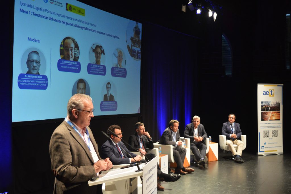 A continuación se ha celebrado una mesa redonda para abordar las tendencias del sector del granel sólido agroalimentario y los retos en materia logística con la participación con Antonio Bua, delegado de AET y presidente de Propeller Club Port of Vigo; Roque González, director general de Supply Chain y Terminales de SERVINOGA S.L. (Grupo NOGAR); Andrés Gómez, presidente de UNISTOCK; Ramón García, director comercial de ERSHIP Grupo; Carlos Arola, CEO de Arola y Francisco Javier Ortega, de Servicios Marítimos Aduaneros Huelva S.L.