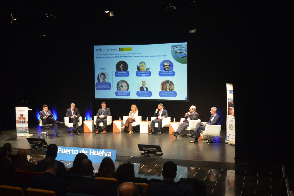 Posteriormente, se ha desarrollado una segunda mesa redonda sobre Los puertos como aliados estratégicos en el crecimiento del sector agroalimentario reefer. En este panel han intervenido: Jaime Beltrán, jefe del Área de Desarrollo de Negocio y Comercial de Autoridad Portuaria de Huelva; José Gómez, responsable de Planta de Frigoríficos Portuarios del Sur; Juan Jesús Dionis, jefe de Carga de Fred Olsen; Gerardo García Gavira, director Comercial de Alisios Shipping Lines; Juan Carlos Fernández, director de Grupo TransOnuba (GTO), Carlos Omaña, head of Market Spain & Portugal de VTG y Lucía Núñez, jefa de Agricultura, Pesca y Alimentación de la Subdelegación del Gobierno en Huelva.